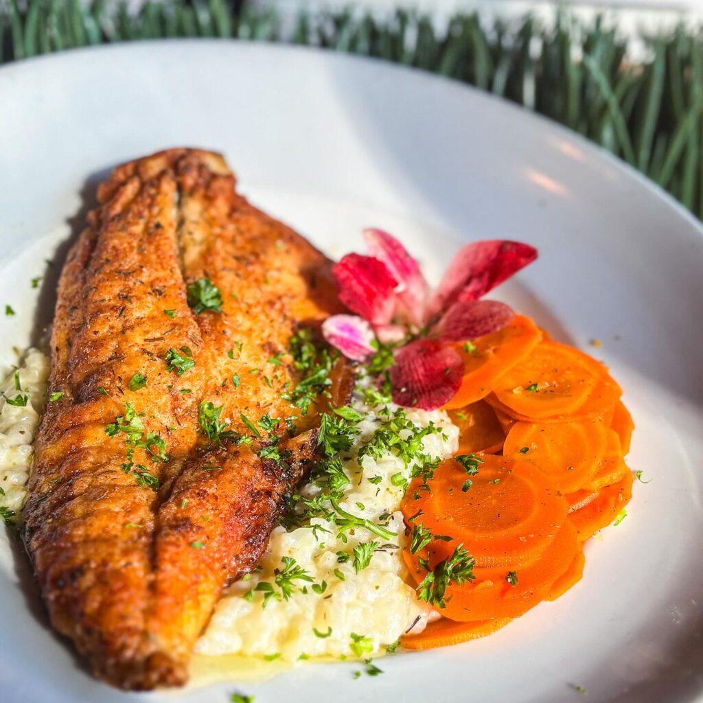 Pan Seared Red Snapper served with Rice, Peas, (Kidney Beans), and Cabbage