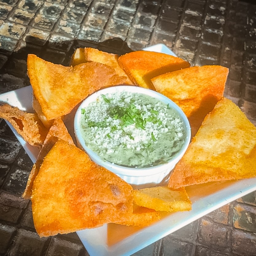 Maine Lobster Roll – ¼lb Chilled Maine Lobster Meat tossed in Mayo, House Seasoning, Shallots, and Chives served with a Lemon and House-made Old Bay Seasoned Potato Chips