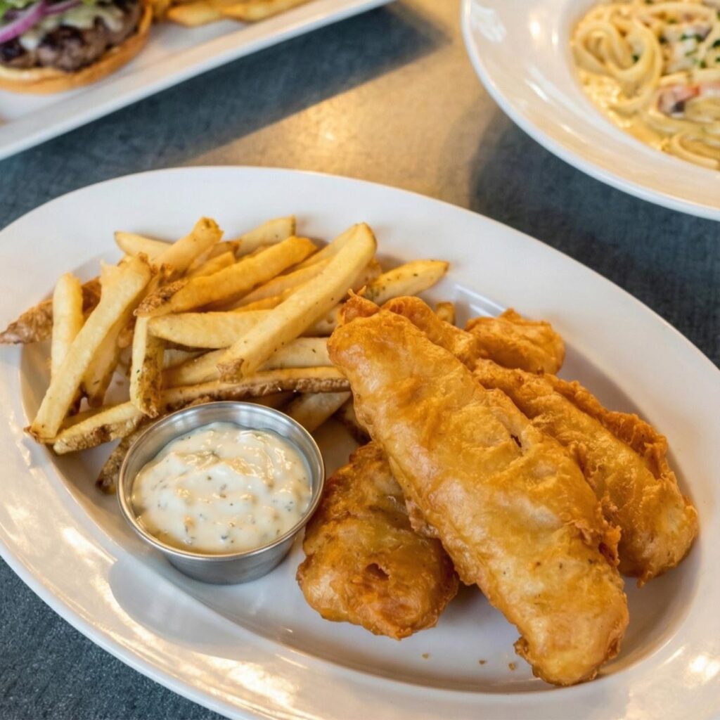 Fish and Chips – Beer Battered Fried Cod served with our House-cut Pommes Frites and TBM Tartar Sauce